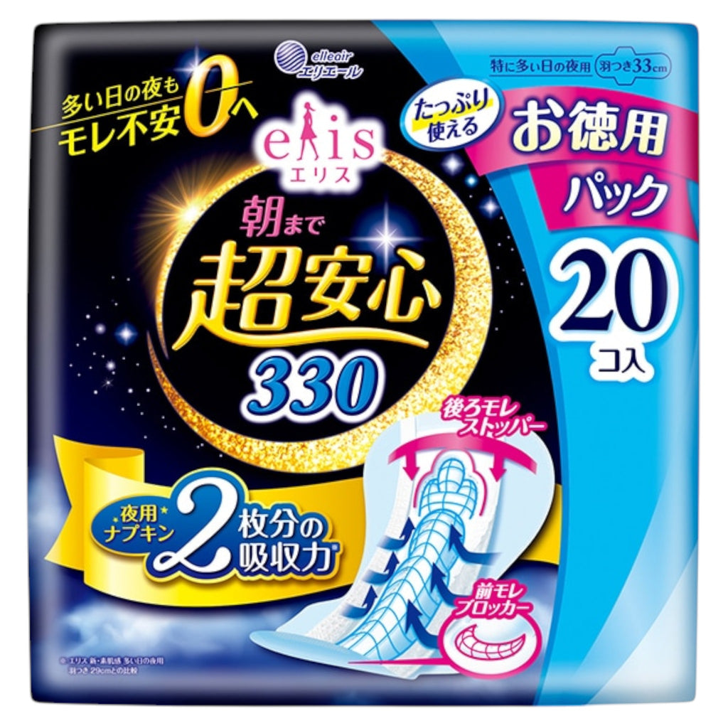 엘리스 밤샘 안심 330 생리대 날개형 33cm 20매입 (특히 많은 날 밤용)