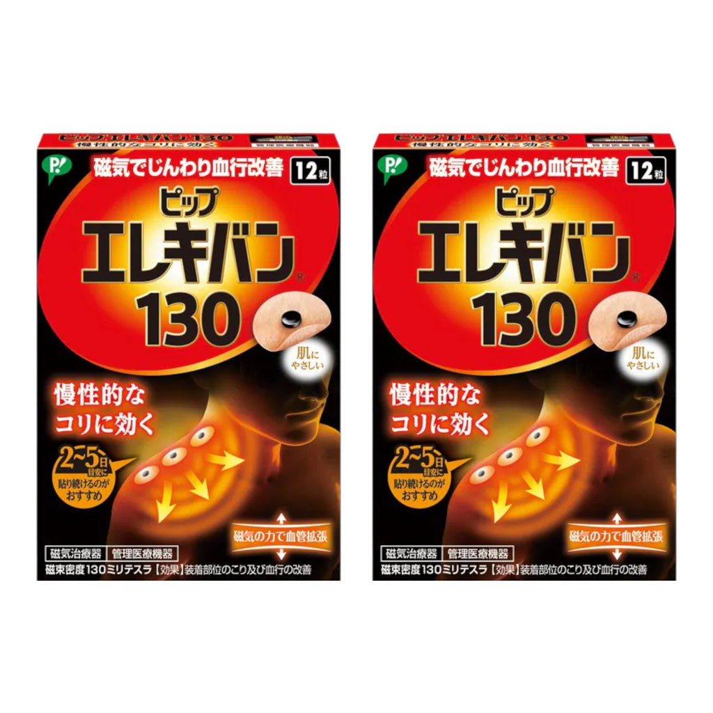 피프 에레키반 130은 자석의 힘을 이용한 자기 치료기기로, 일상생활 중 반복적으로 느껴지는 근육의 긴장이나 결림이 있는 부위에 부착하여 사용하는 제품입니다.