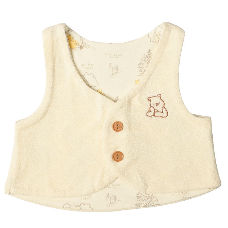 阿卡醬本舖寶寶鈕扣背心經典普是以經典普圖案為重點的鈕扣式寶寶背心。